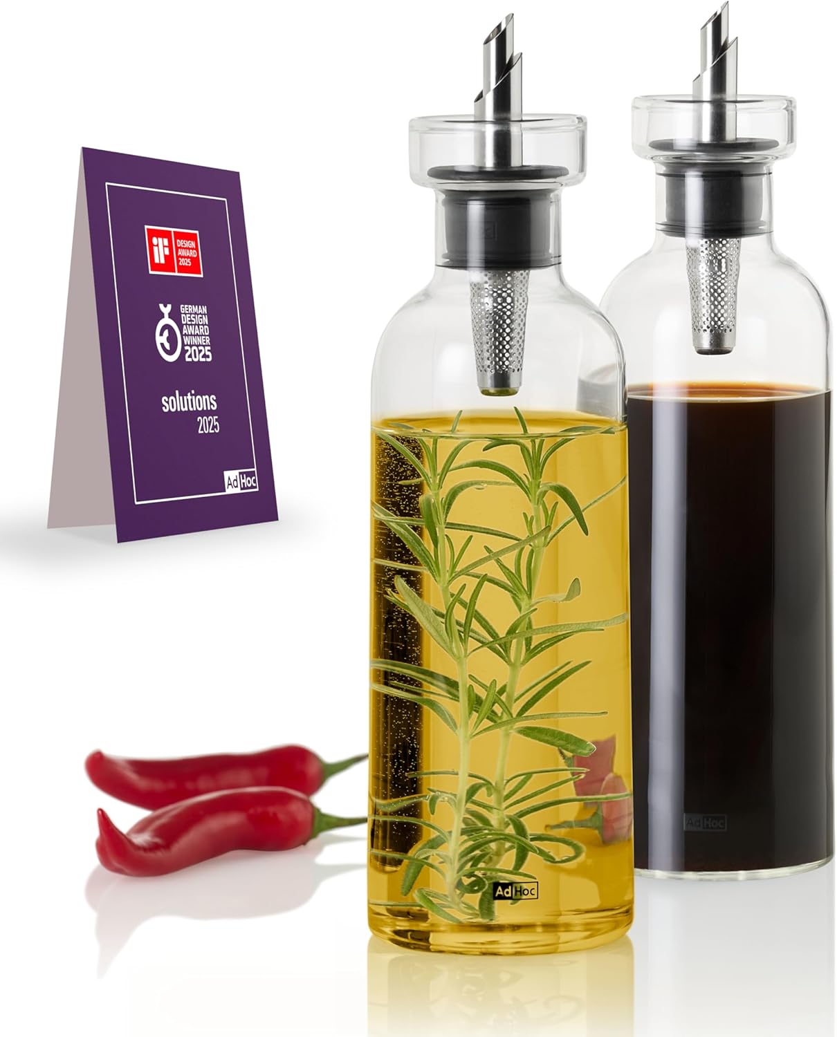Комплект оливерници AdHoc BZ81 за олио или оцет AromaPour от стъкло с поставка, 300 мл