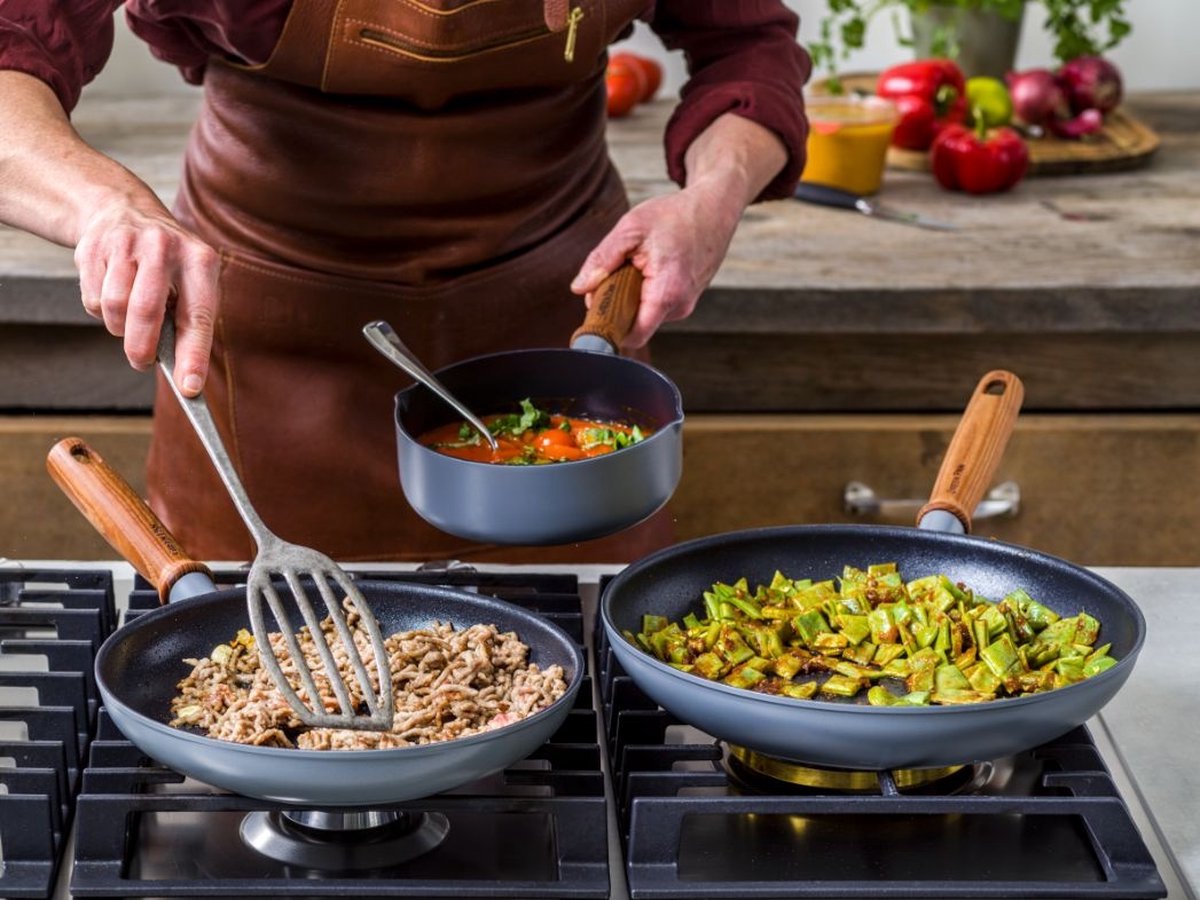 Да, напълно безопасно е. Всички съдове са без тефлон, PFAS и други токсични вещества, така че можете да готвите здравословно за цялото семейство. Незалепващите покрития позволяват използване на по-малко мазнина, а вкусът на храната остава чист и натурален.