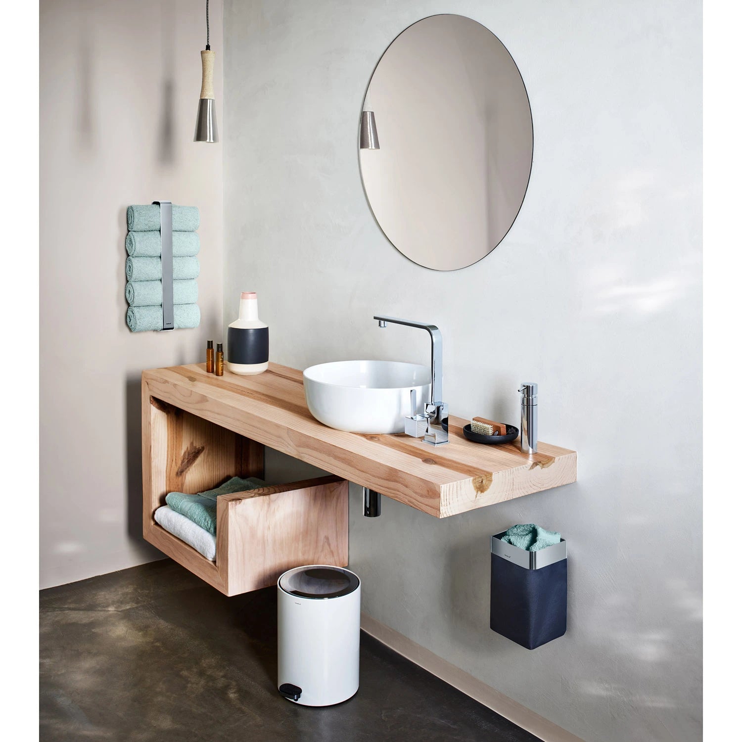 Стенният кош за малки кърпи NEXIO е елегантен елемент за съхранение, предназначен не само за малка баня. Практичната компактна форма и стенният монтаж ви позволяват да поставите коша точно там, където ви е необходим, без да се налага да се навеждате неудобно към пода.