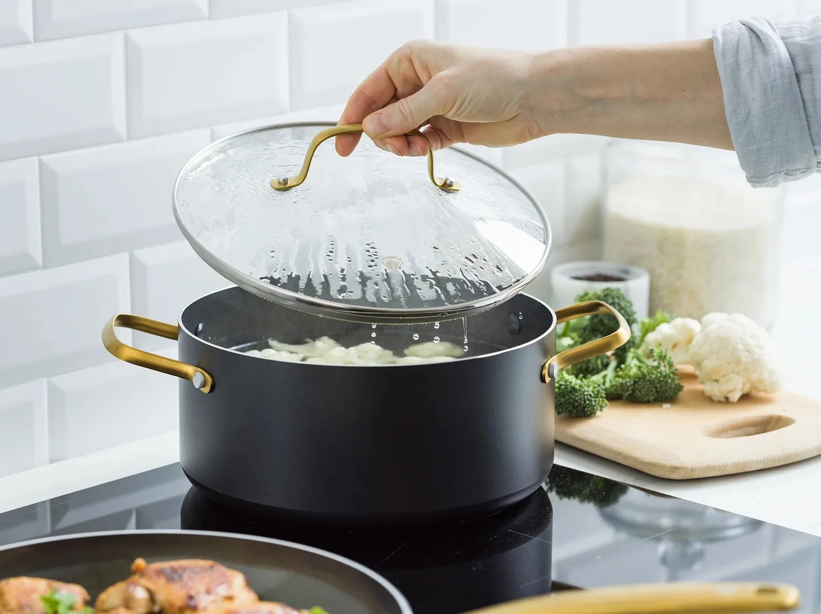 Лесно почистване: Благодарение на незалепващите свойства, почистването става буквално с едно избърсване. Въпреки че производителят посочва, че е подходяща за съдомиялна, препоръчвам миене на ръка, за да запазиш златния блясък на дръжките по-дълго.