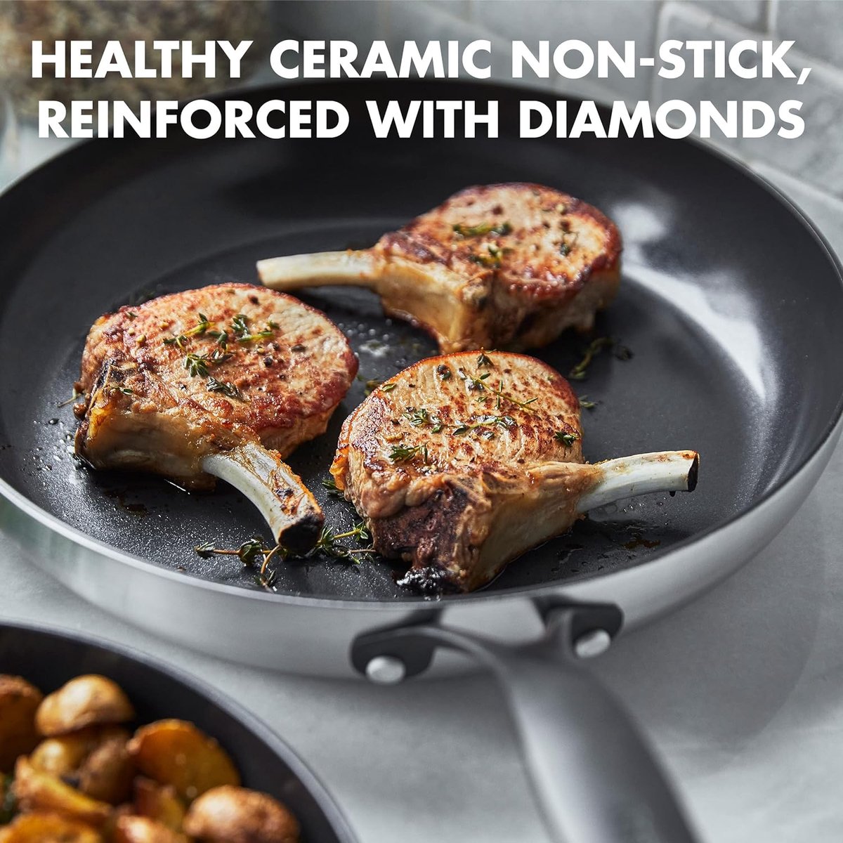Керамичното незалепващо покритие Thermolon™ Diamond Advanced е изключително издръжливо и напълно без PFAS химикали, олово и кадмий.