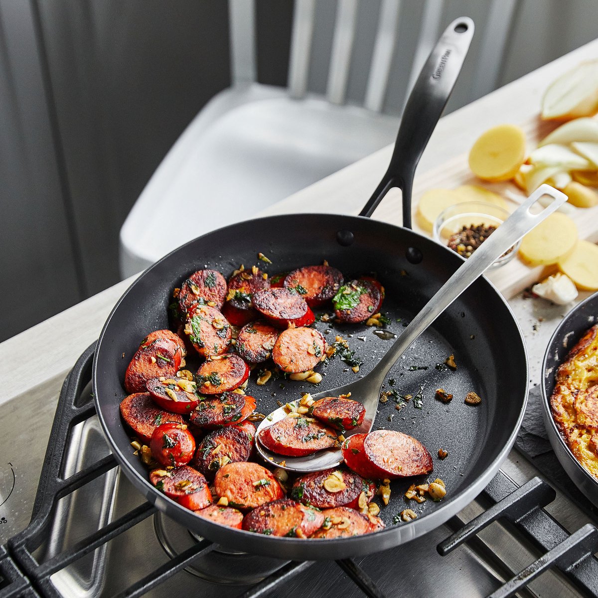 - GreenPan – белгийска марка с керамично покритие Thermolon™, без PFAS и тефлон, за здравословно и екологично готвене.