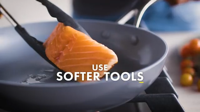 - Не бива да се мие с абразивни телчета – те могат да нарушат слоя и да съкратят живота на съда.