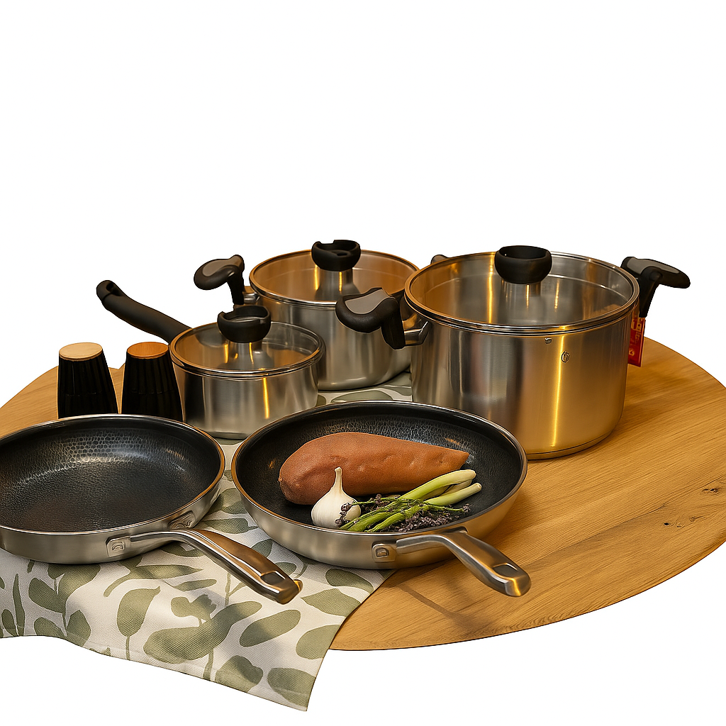 Да, напълно безопасно е. Всички съдове са без тефлон, PFAS и други токсични вещества, така че можете да готвите здравословно за цялото семейство. Незалепващите покрития позволяват използване на по-малко мазнина, а вкусът на храната остава чист и натурален.